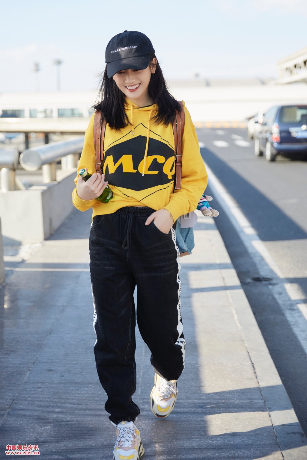 鄭湫泓連帽衫機場(chǎng)街拍 可愛(ài)隨性笑容甜甜