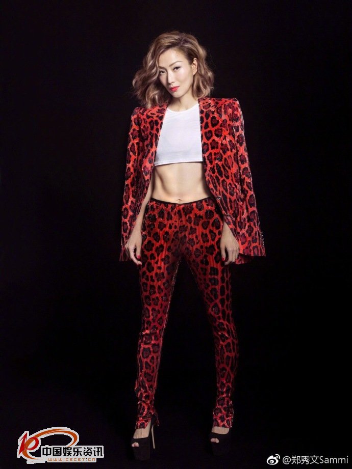 鄭秀文紅色西裝外套照 露出緊實(shí)的腹肌火辣迷人