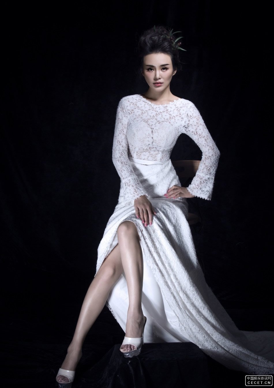 鄭伊涵露背禮服寫(xiě)真 鏤空蕾絲花紋優(yōu)雅性感