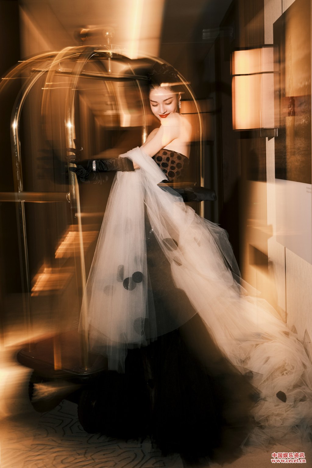 鐘楚曦波點(diǎn)魚(yú)尾裙氛圍照 黑白交織星光一色