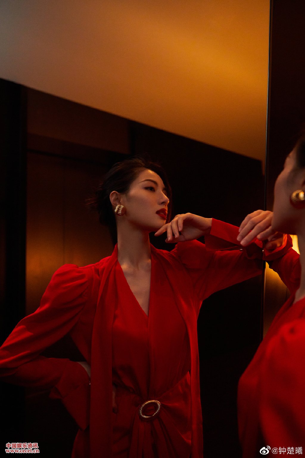 鐘楚曦復古紅裝造型 如明艷的紅玫瑰在綻放