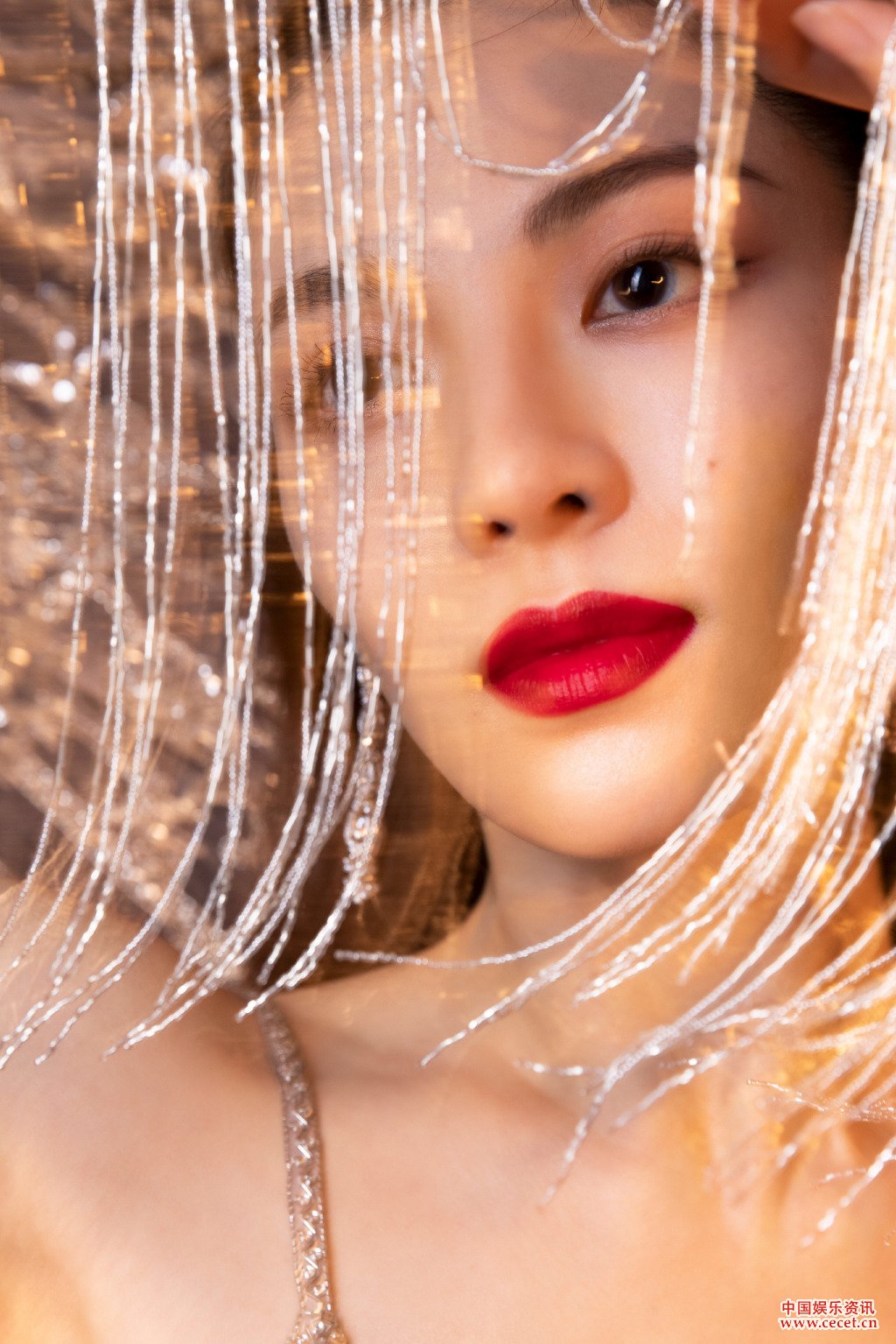 鐘楚曦金色流蘇露腰裙 鎏金溢彩閃爍迷人光芒