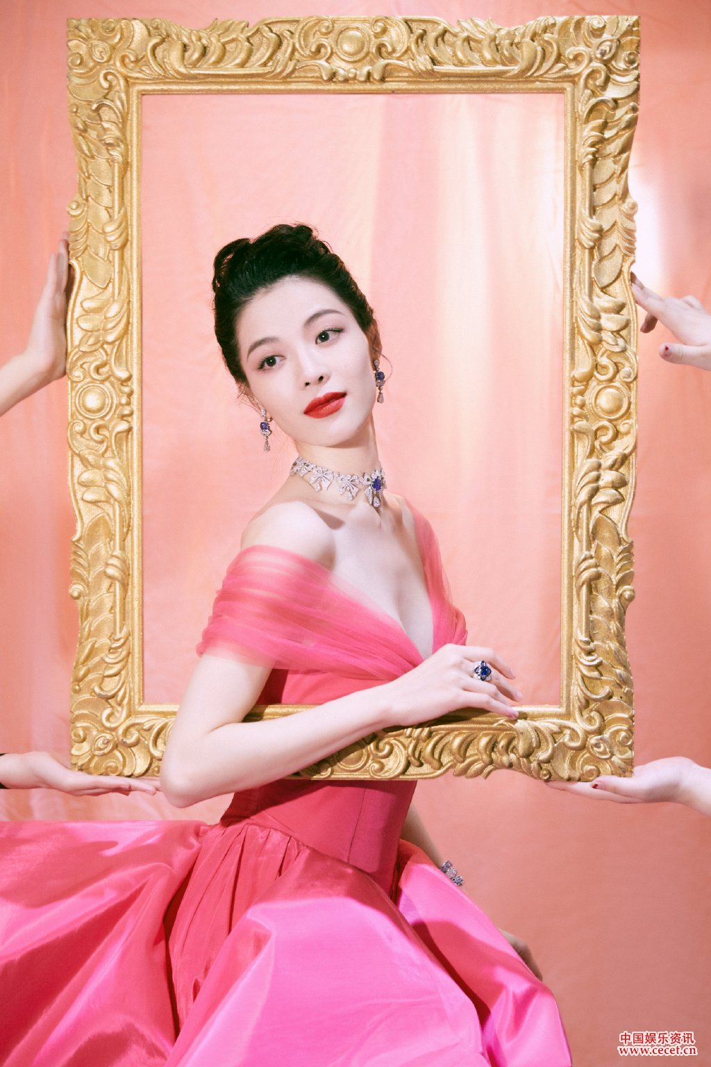 鐘楚曦身著(zhù)玫紅色法式復古宮廷裙璀璨耀眼