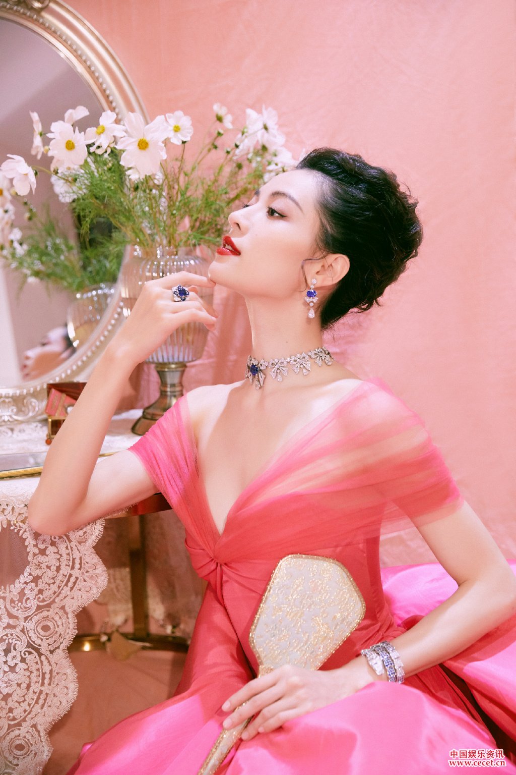 鐘楚曦身著(zhù)玫紅色法式復古宮廷裙璀璨耀眼