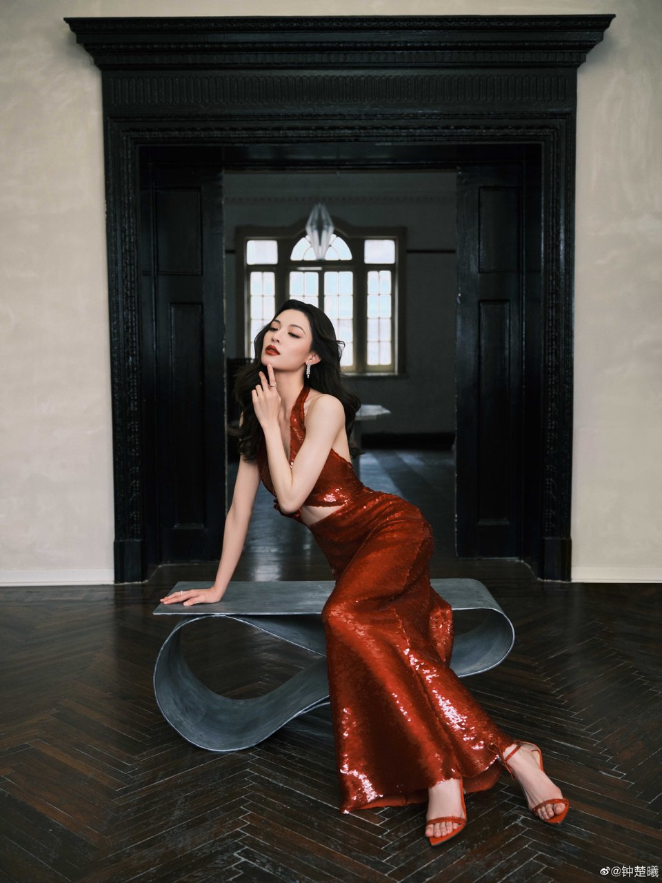 鐘楚曦玫瑰紅色肆意綻放 光影定格魅力瞬間