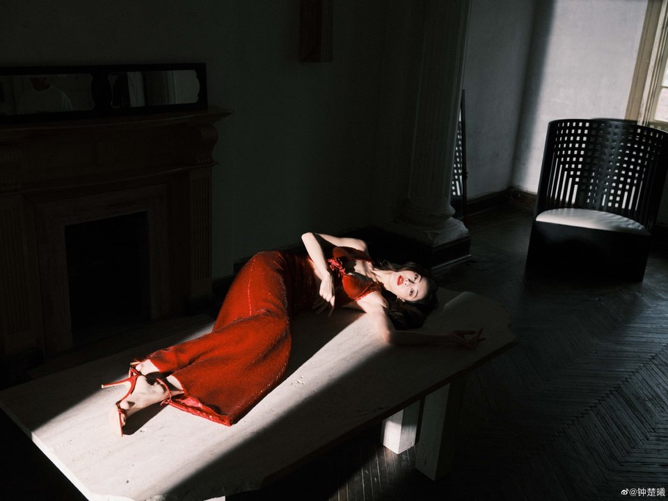 鐘楚曦玫瑰紅色肆意綻放 光影定格魅力瞬間