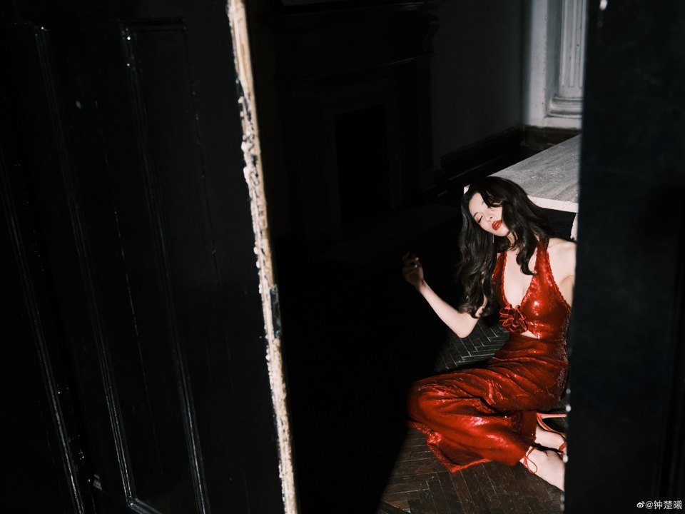 鐘楚曦玫瑰紅色肆意綻放 光影定格魅力瞬間
