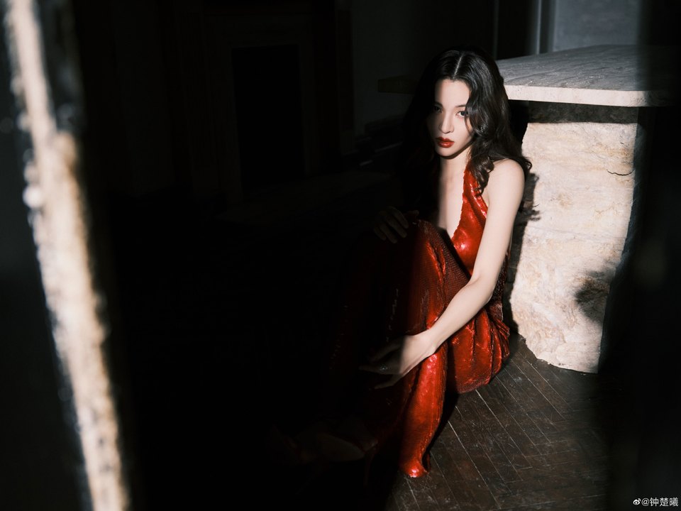 鐘楚曦玫瑰紅色肆意綻放 光影定格魅力瞬間
