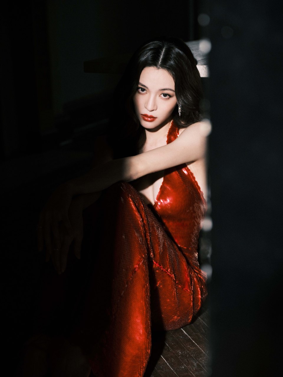 鐘楚曦玫瑰紅色肆意綻放 光影定格魅力瞬間