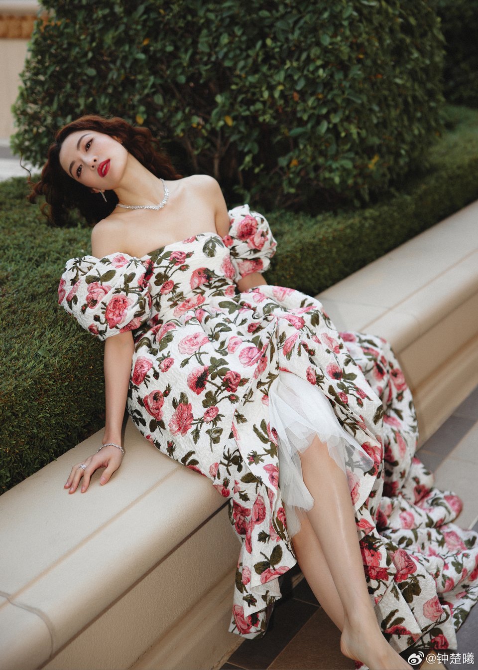 鐘楚曦繁花錦簇禮服裙 炙熱濃烈為東方美人骨