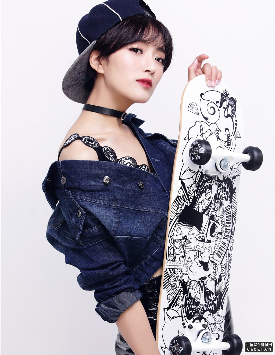 種丹妮寫(xiě)真個(gè)性十足 亮皮裙搭配時(shí)尚吊帶