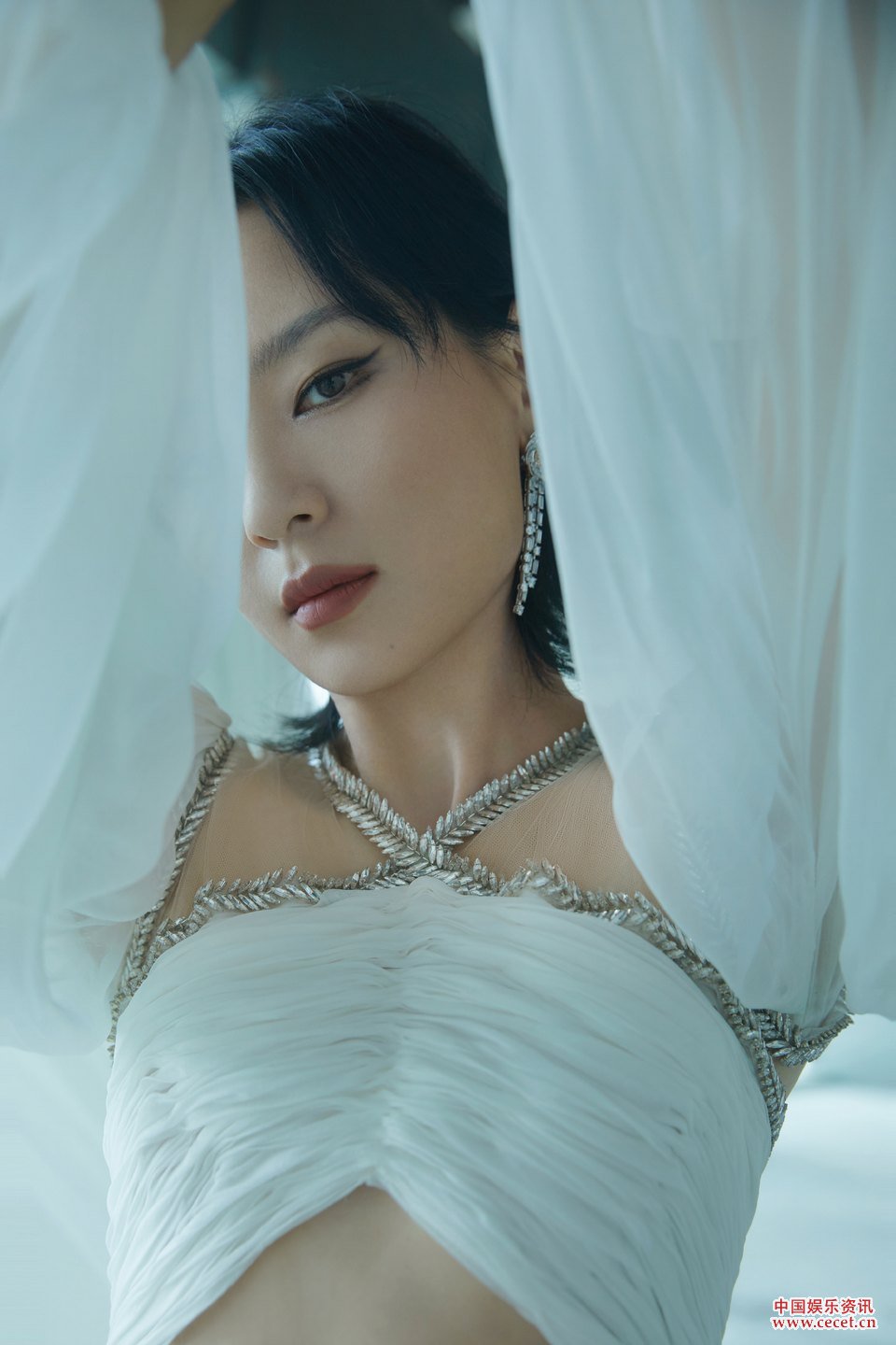 周筆暢朦朧白紗襯托輕盈身姿 展現別具一格姿態(tài)