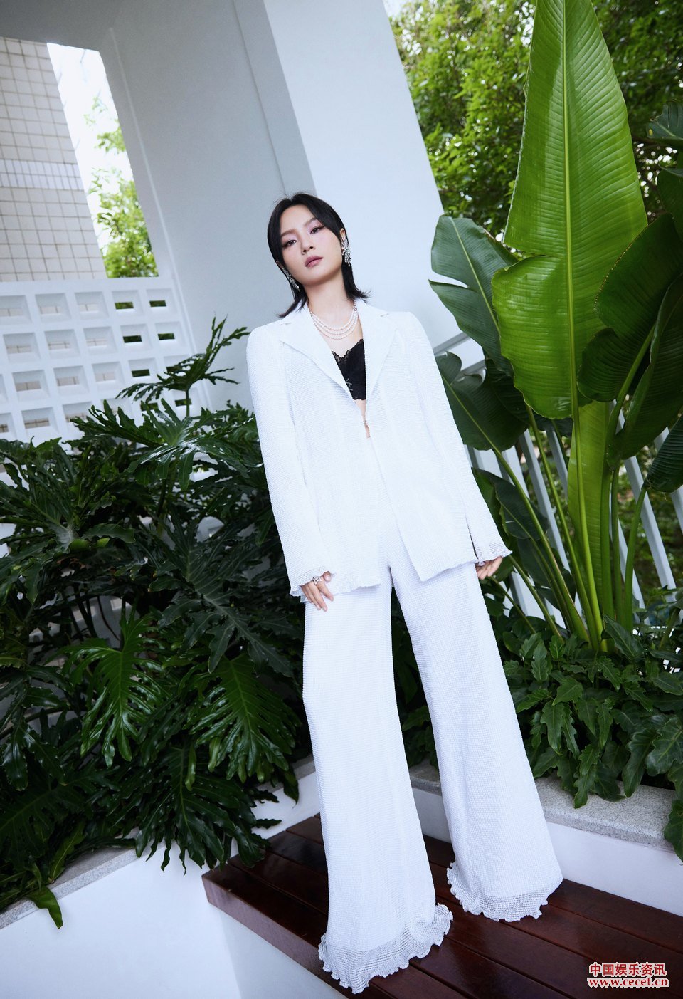 周筆暢白色西服套裝極致無(wú)暇 珍珠點(diǎn)綴姿態(tài)輕盈
