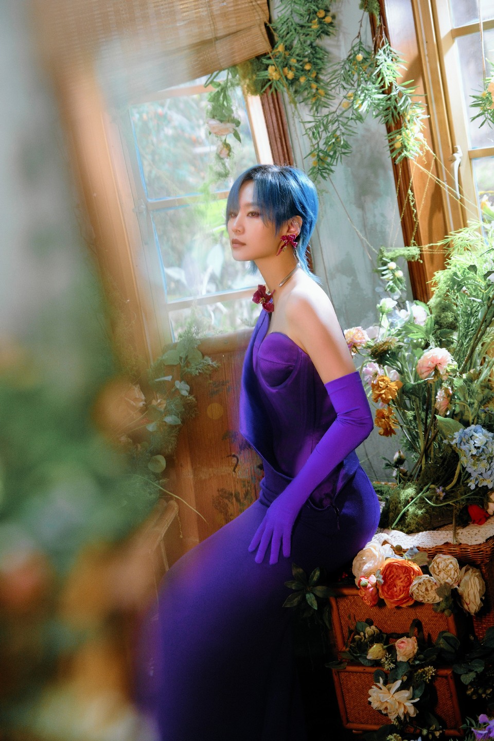 周筆暢復古羅蘭紫優(yōu)雅從容 瑰麗頸花綻放靚麗自信