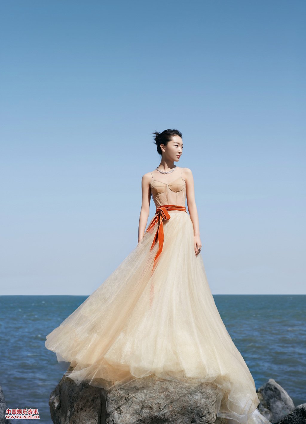 周冬雨裸色鳳尾長(cháng)裙 飄渺影中人疑似海上花