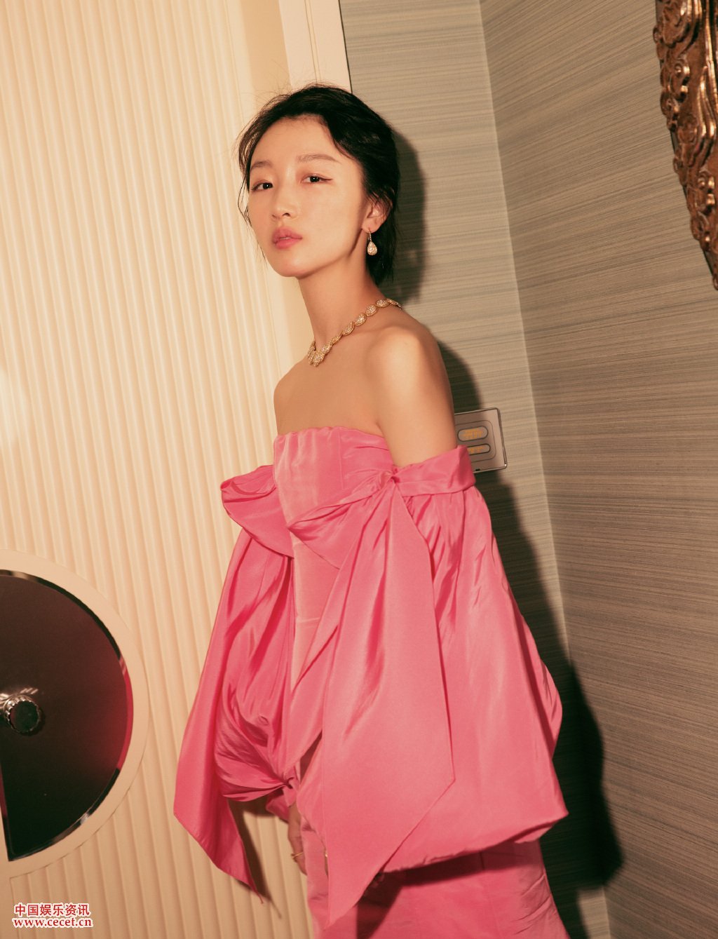 周冬雨粉嫩造型氣場(chǎng)足 佳人粉裙亭亭而立