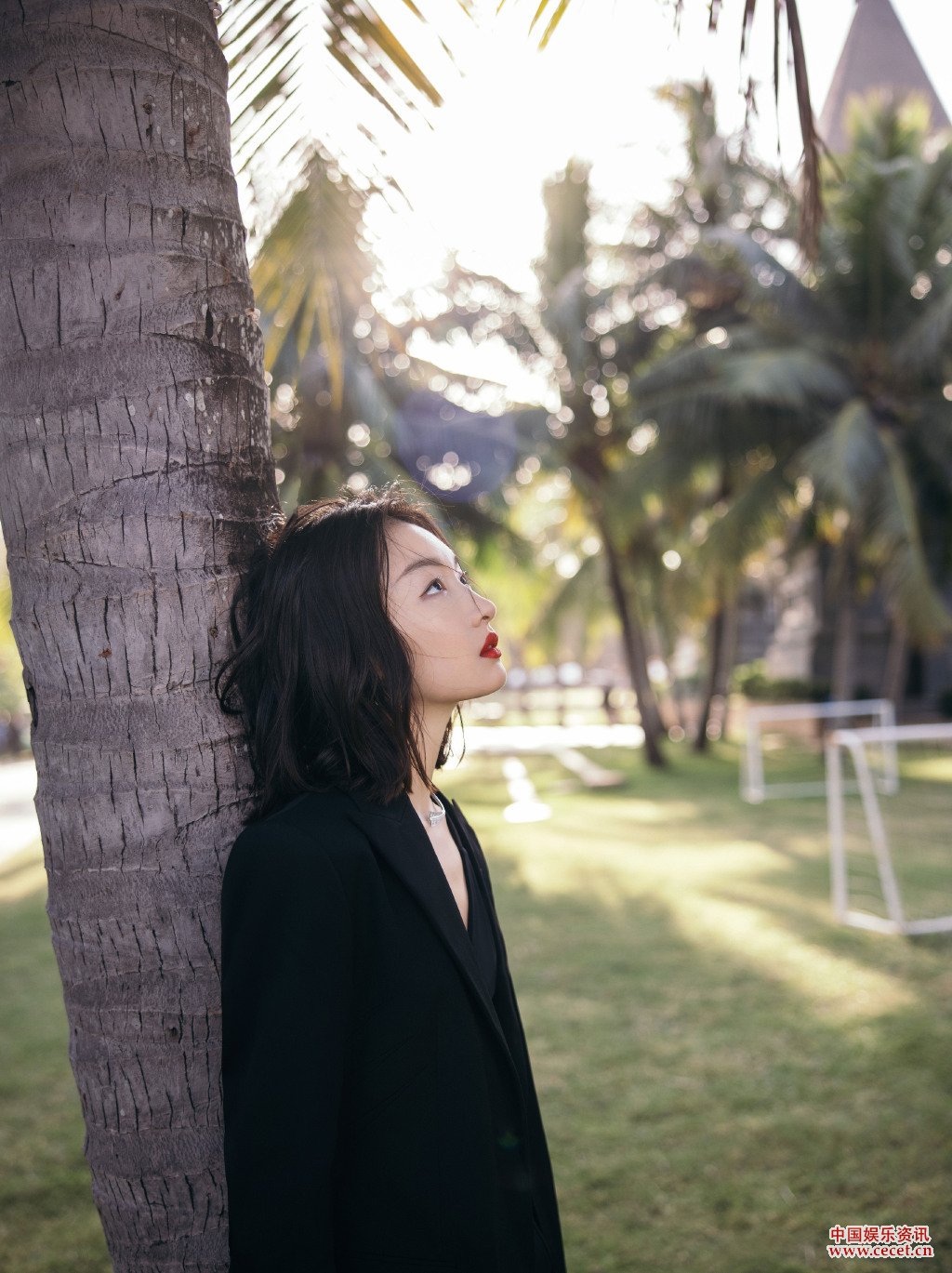 周冬雨黑色套裝海邊照 酷颯有型果敢熱烈