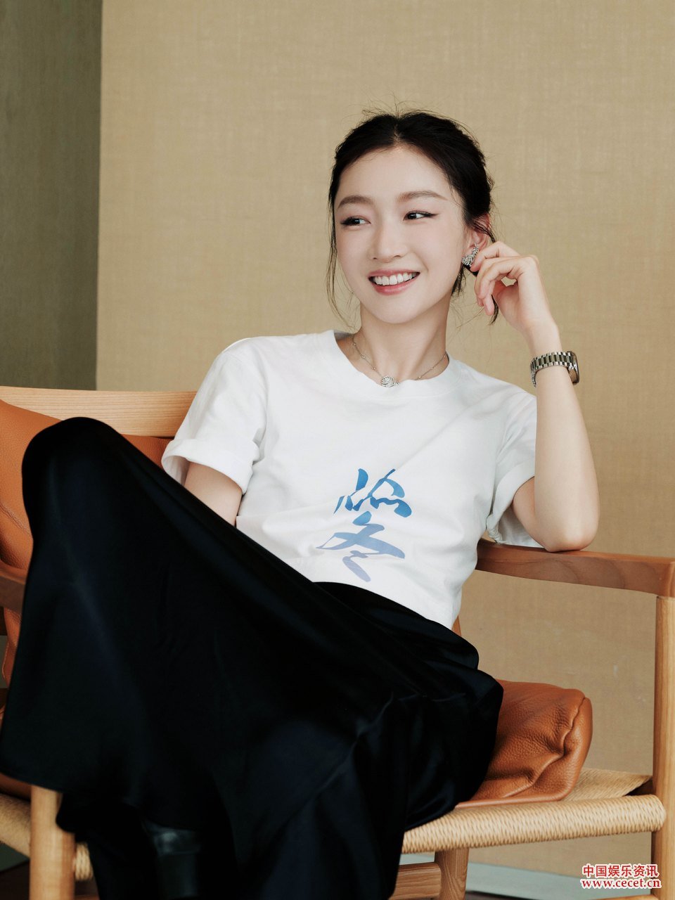 周冬雨青春裝元氣十足 在光影間秀出精致側顏