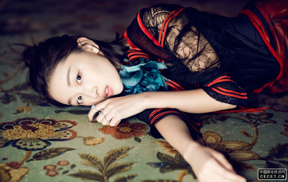 周冬雨曝光雜志大片 白色鏤空上衣小秀性感