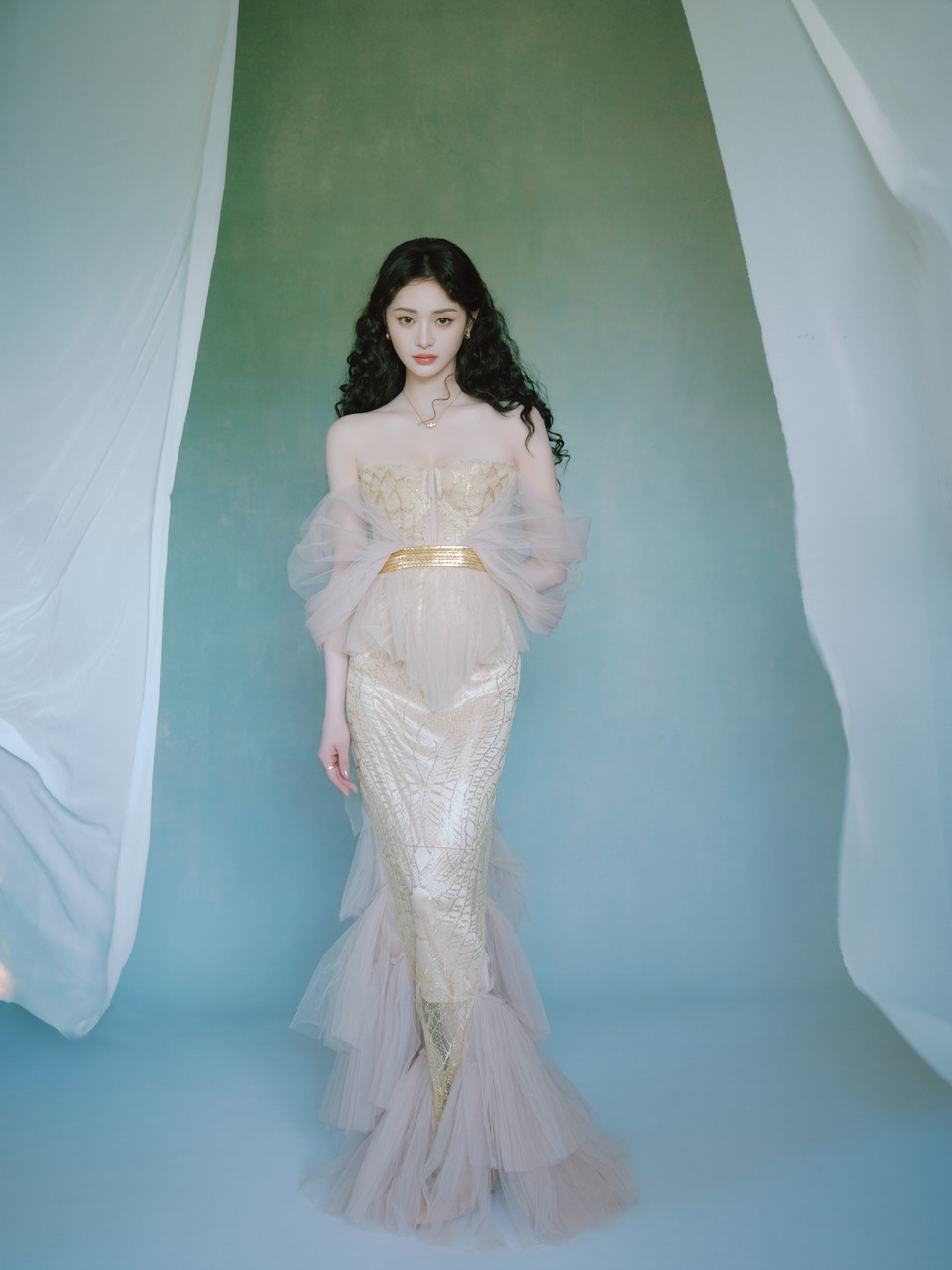 周潔瓊身披璀璨優(yōu)雅奪目 金紗流淌熠熠生輝