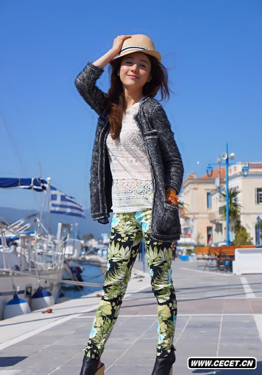周庭伊倫敦街頭拍寫(xiě)真 鏤空蕾絲時(shí)尚俏皮