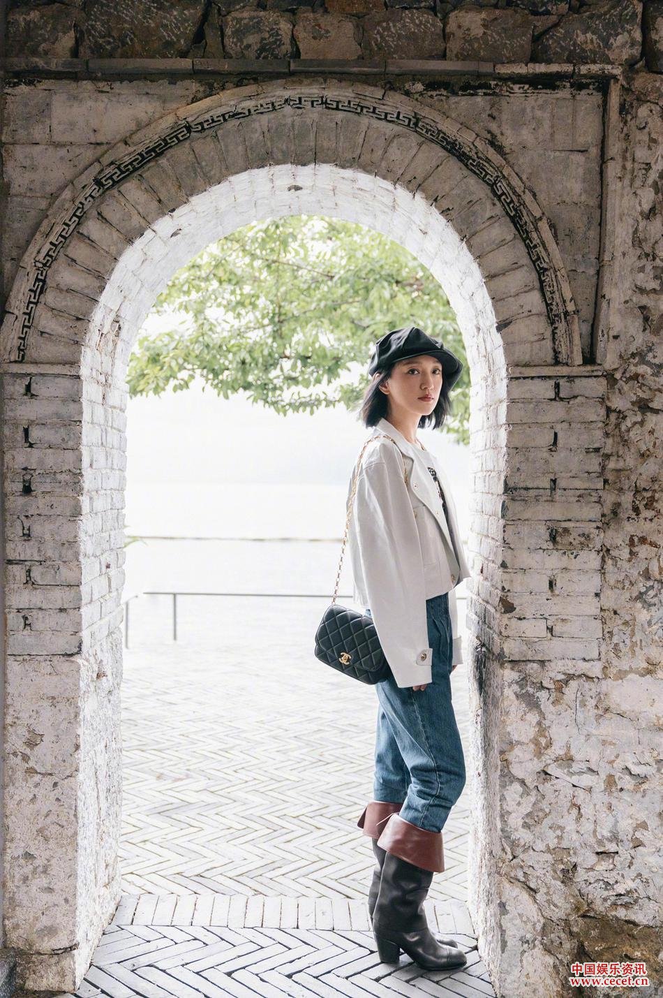 周迅出游美圖 頭戴小皮帽湖邊散步笑容靈動(dòng)