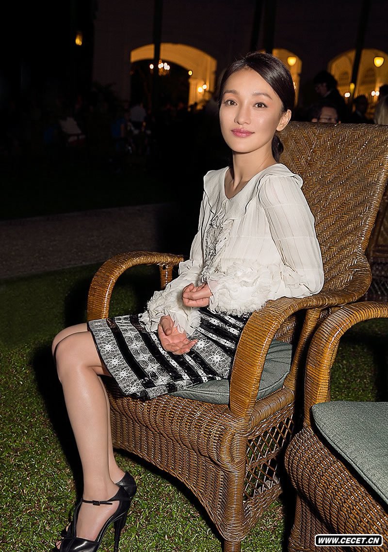 周迅身著(zhù)羽毛蕾絲連身裙 現身卡爾全球大秀