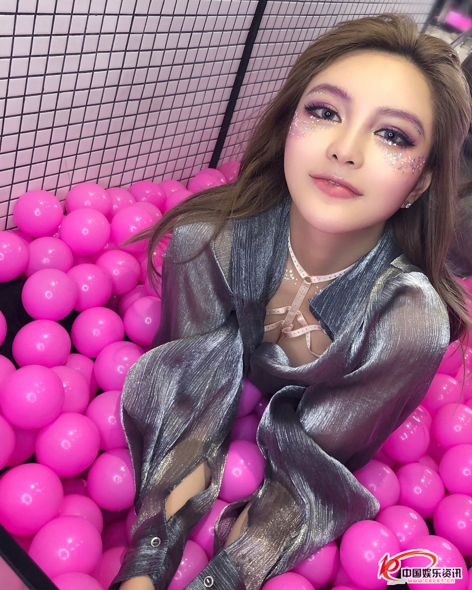 周揚青畫(huà)著(zhù)眼妝坐在粉色球中間歪頭秀側顏