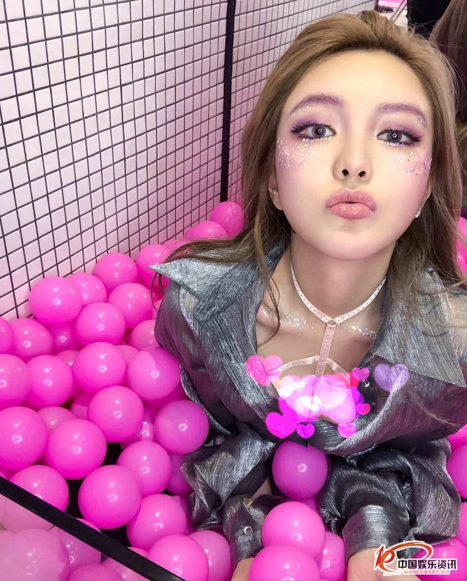 周揚青畫(huà)著(zhù)眼妝坐在粉色球中間歪頭秀側顏