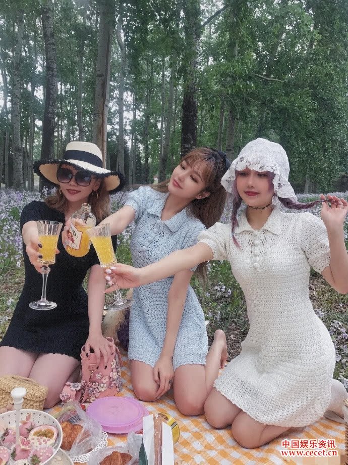 周揚青身穿藍色公主風(fēng)針織裙享受外出時(shí)光