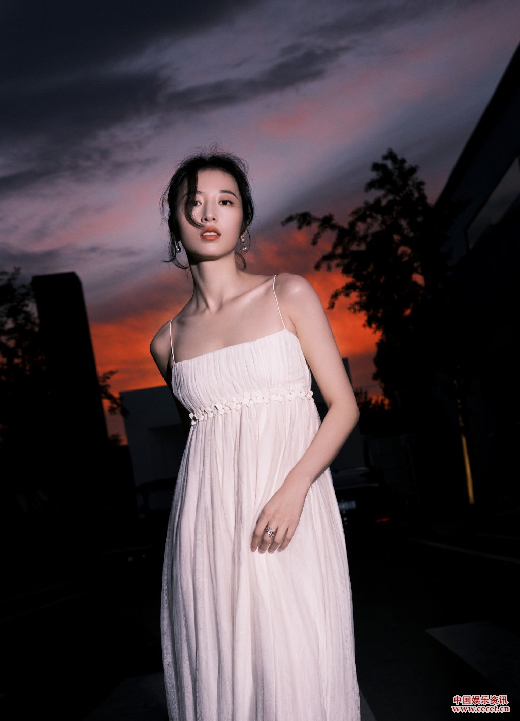 周雨彤吊帶白裙現身 晚霞下的公主令人心動(dòng)