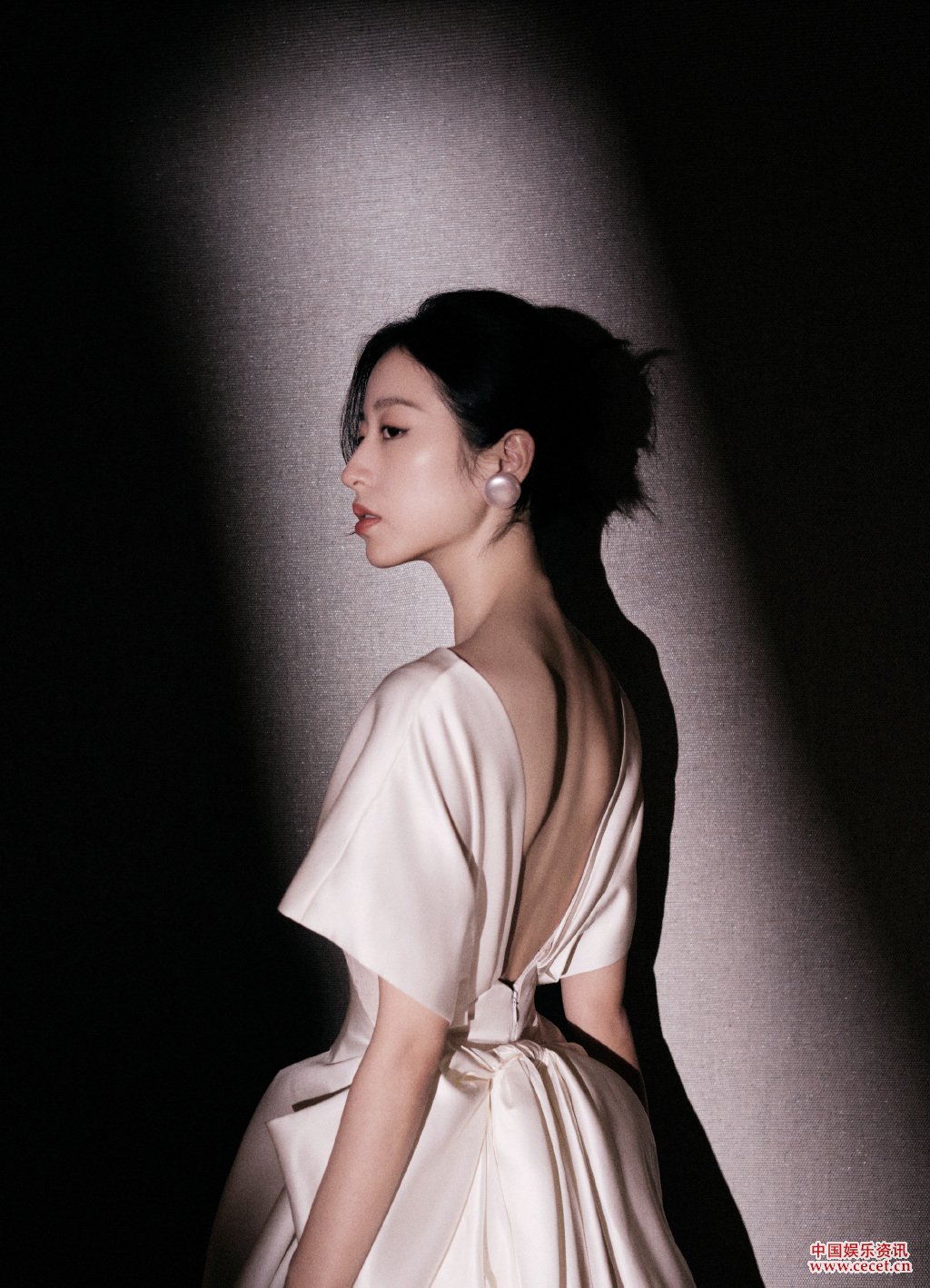 周雨彤長(cháng)款拖地禮服照 幽暗的空間更顯神秘感