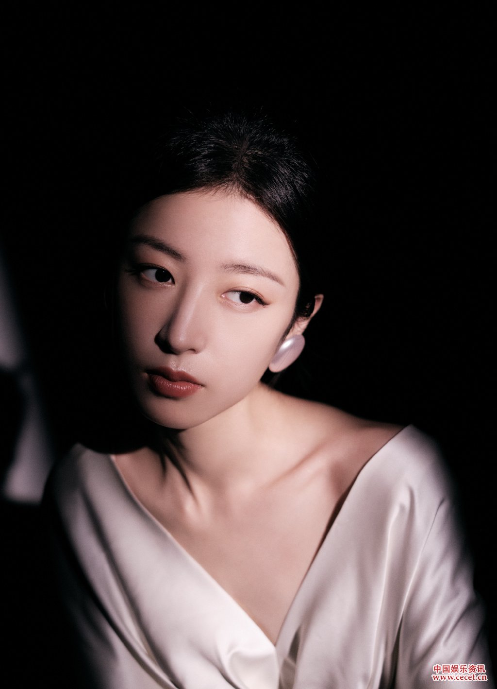 周雨彤長(cháng)款拖地禮服照 幽暗的空間更顯神秘感