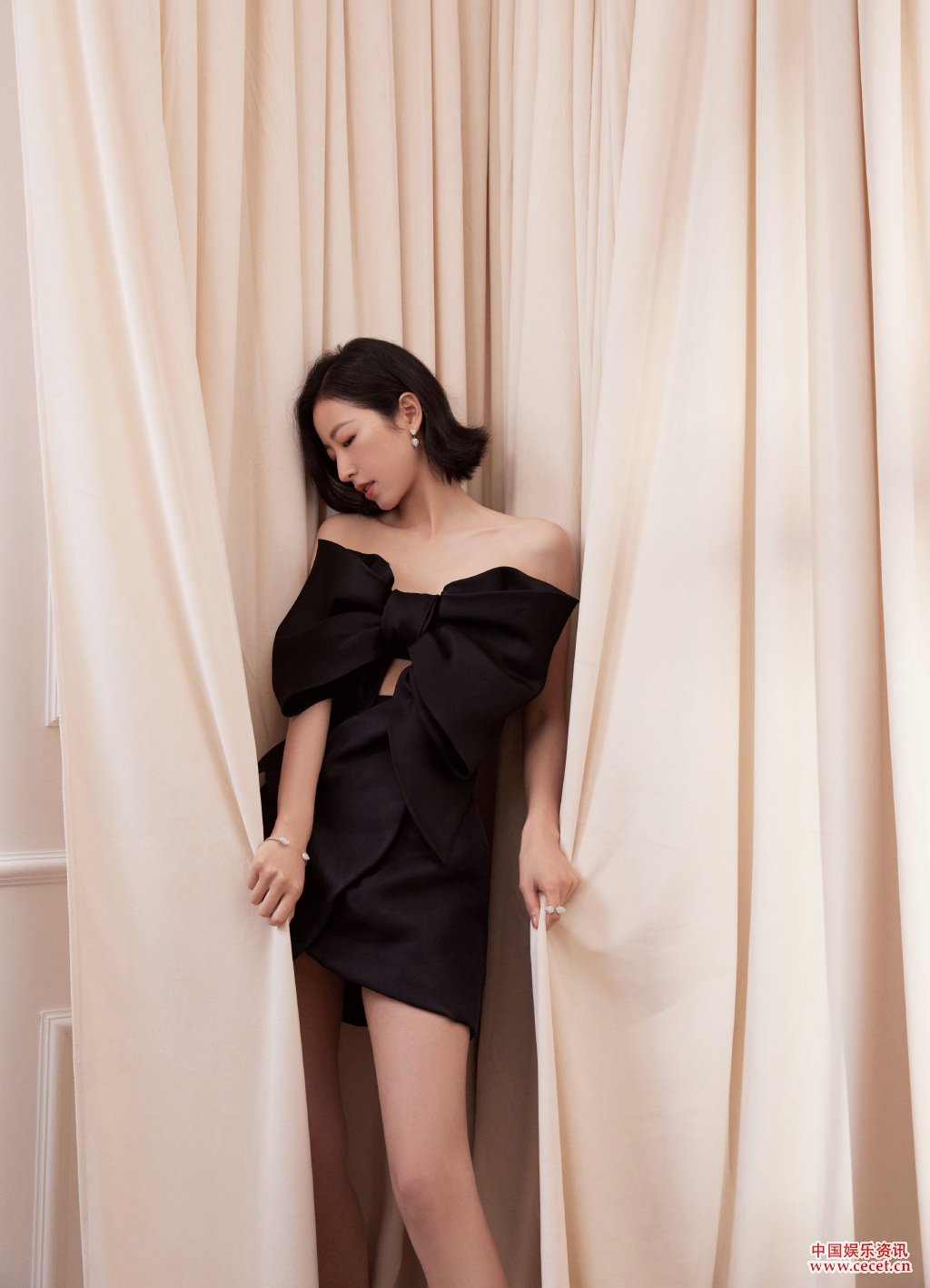 周雨彤黑色抹胸小禮裙 超大蝴蝶結凸顯頸部線(xiàn)條