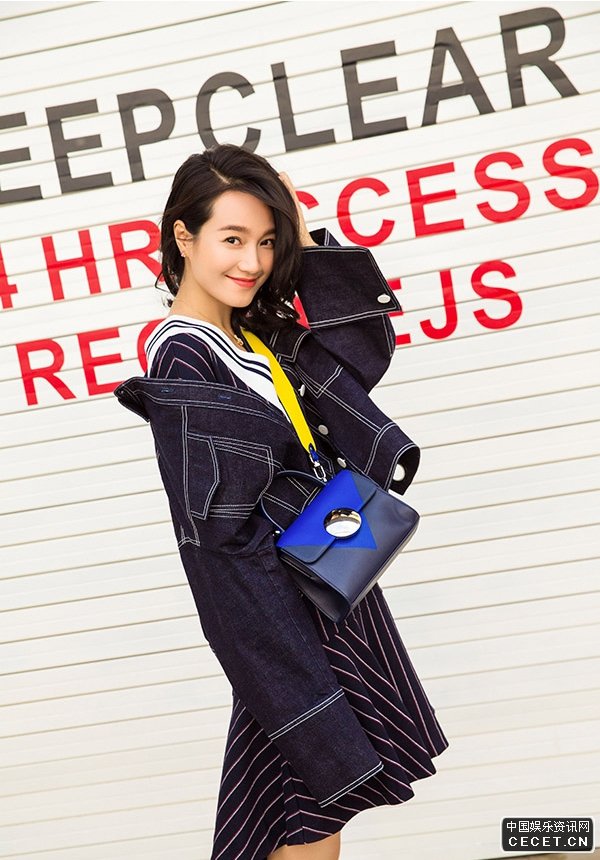 朱丹時(shí)尚大片酷感十足 豎紋V領(lǐng)連衣裙俏皮活潑