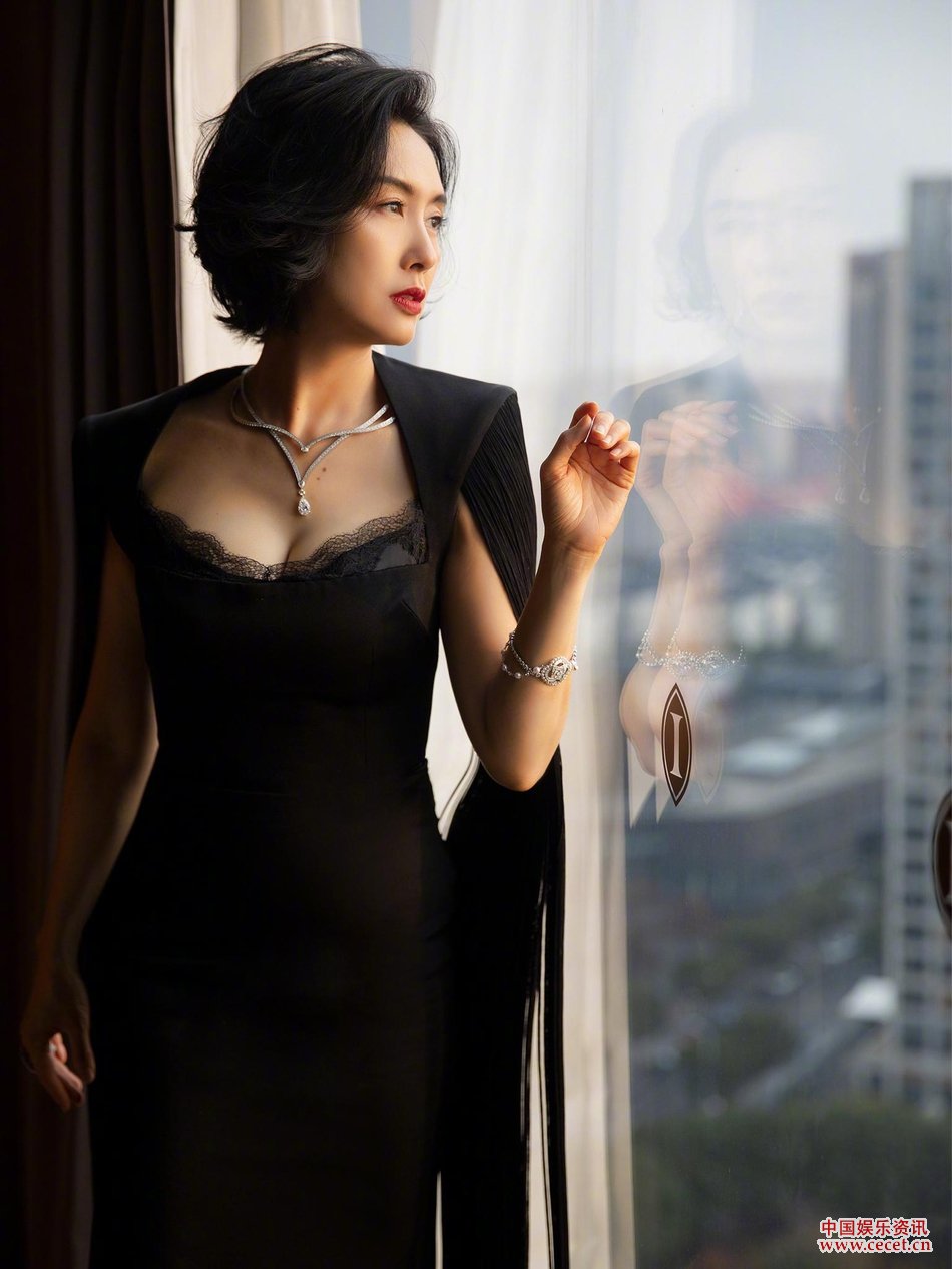 朱茵黑色高墊肩流蘇裙 感嘆女神的魅力依舊