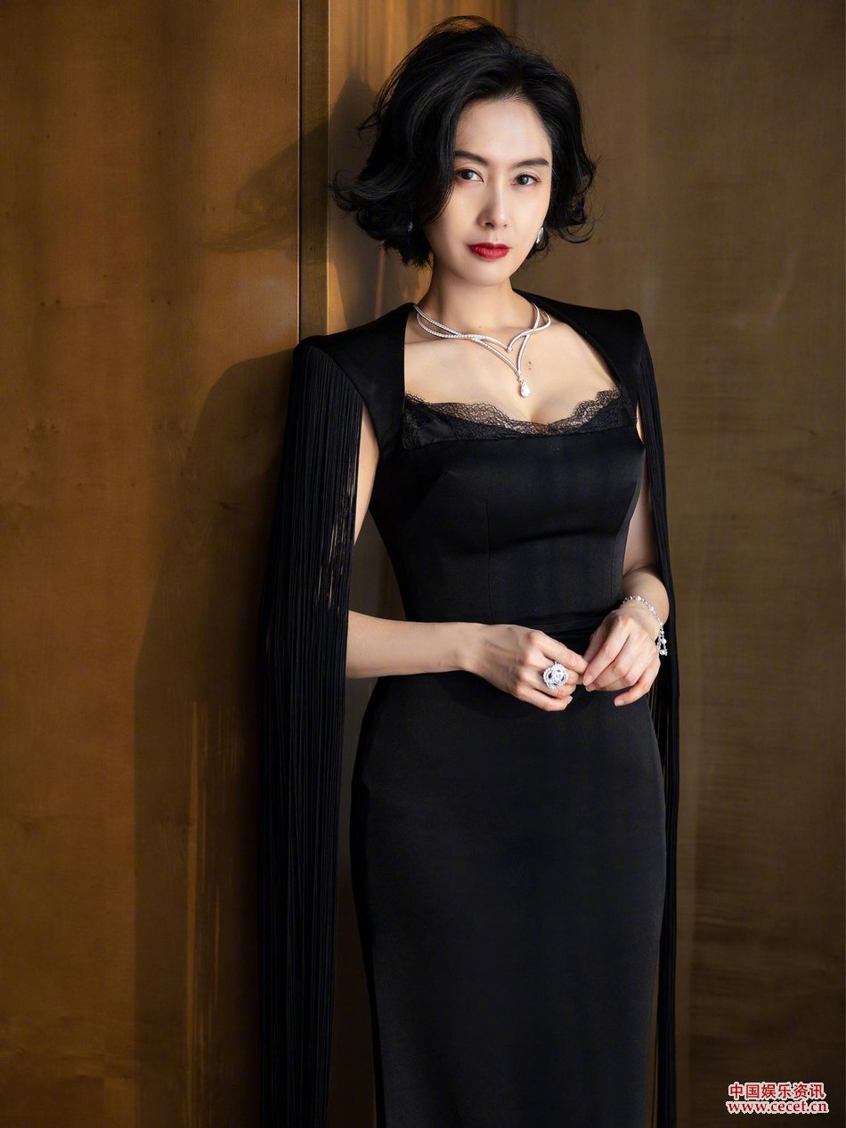 朱茵黑色高墊肩流蘇裙 感嘆女神的魅力依舊