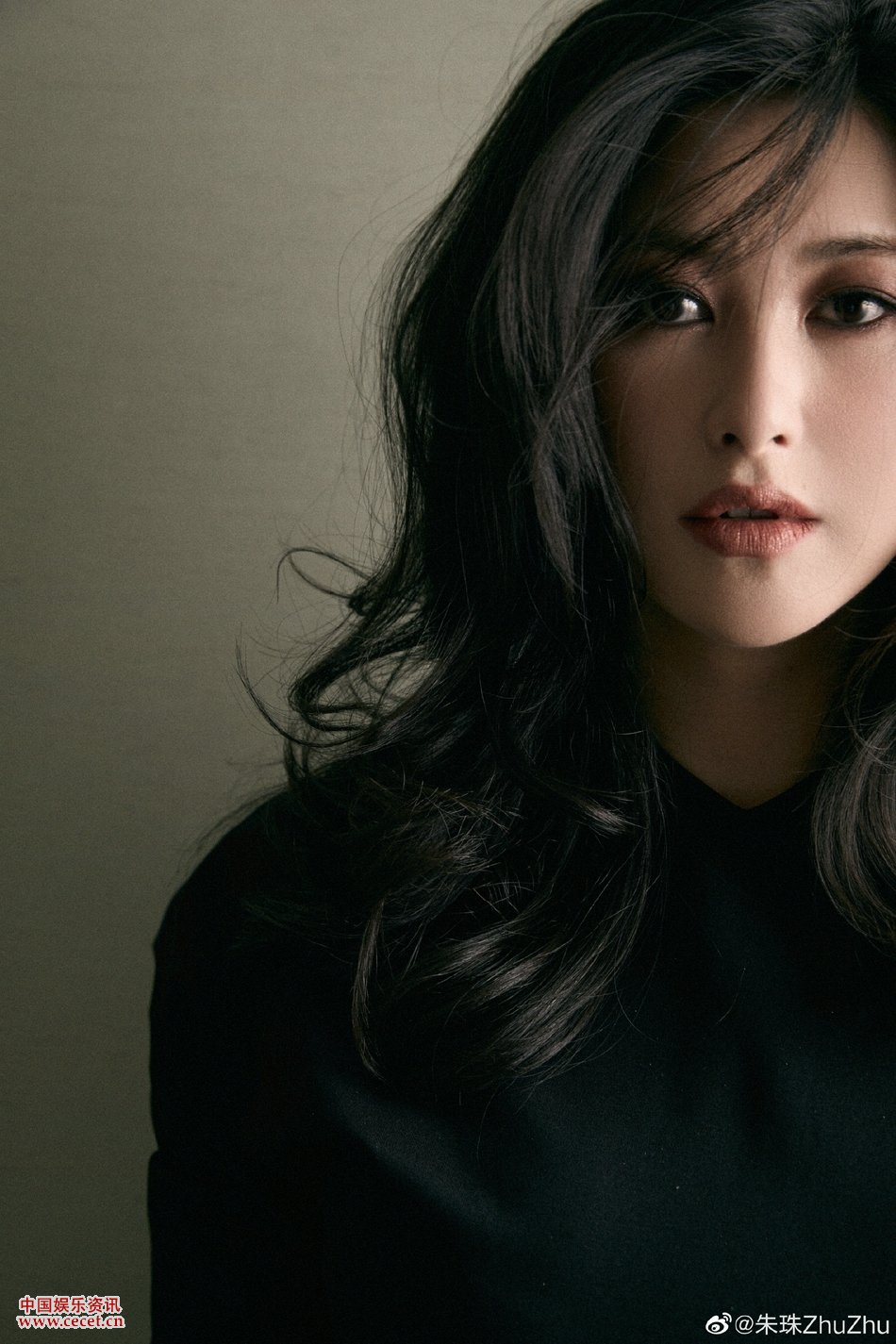 朱珠黑色長(cháng)裙性感優(yōu)雅 煙熏妝配慵懶卷發(fā)