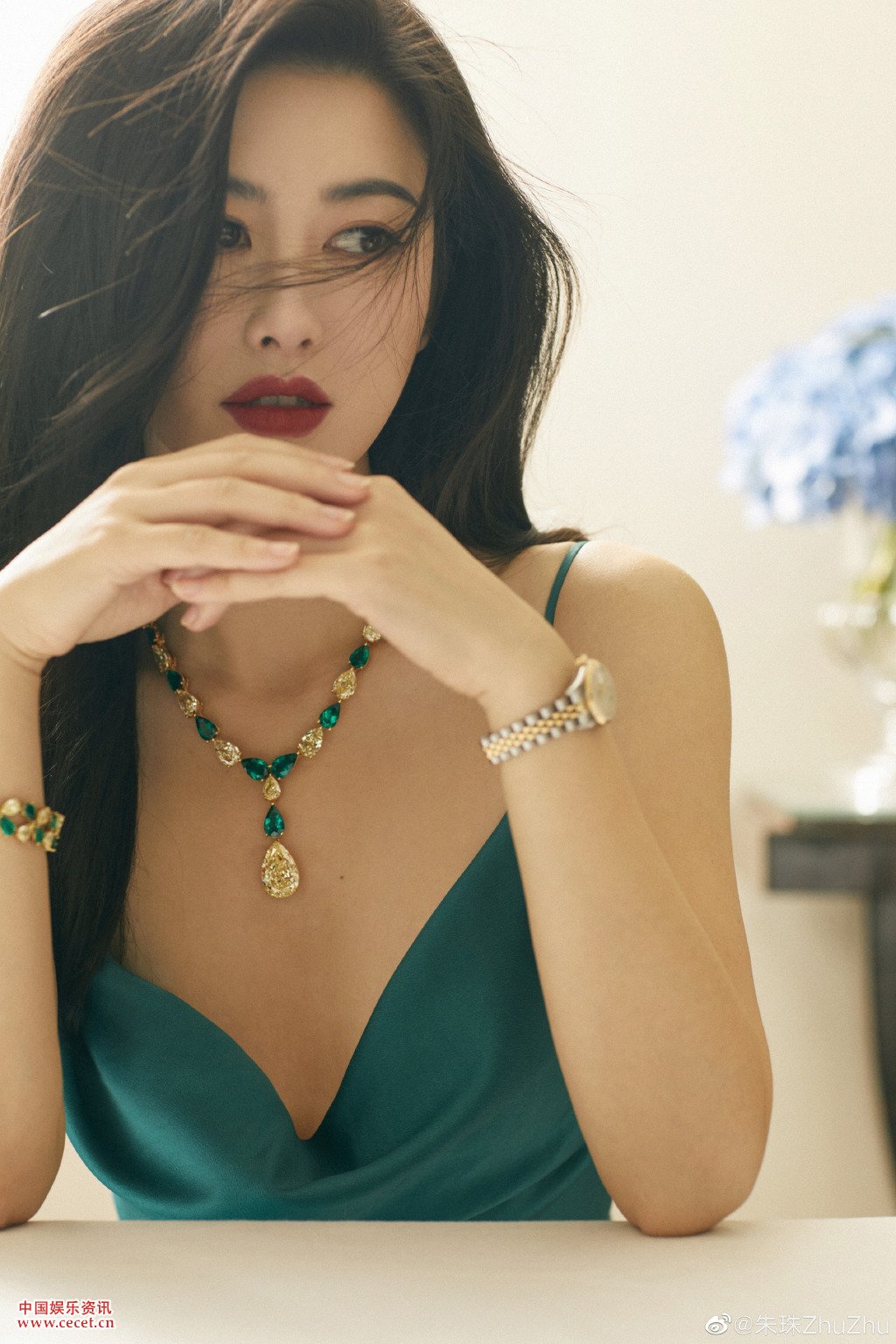 朱珠吊帶長(cháng)裙閃耀高級 明艷犀利風(fēng)情萬(wàn)種
