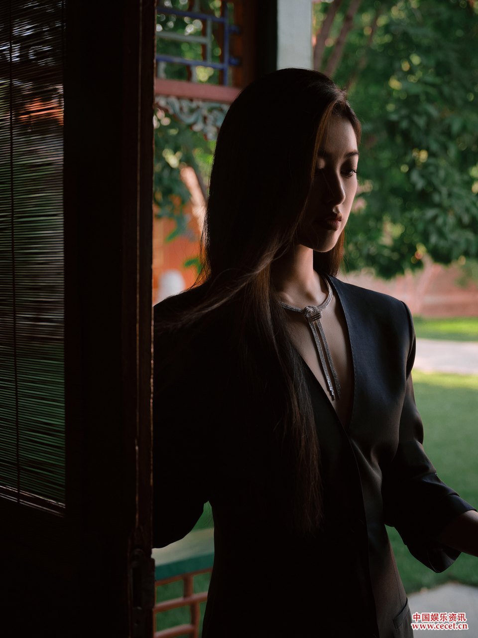 朱珠身穿黑色西裝長(cháng)裙 古韻意濃詮釋典雅風(fēng)姿